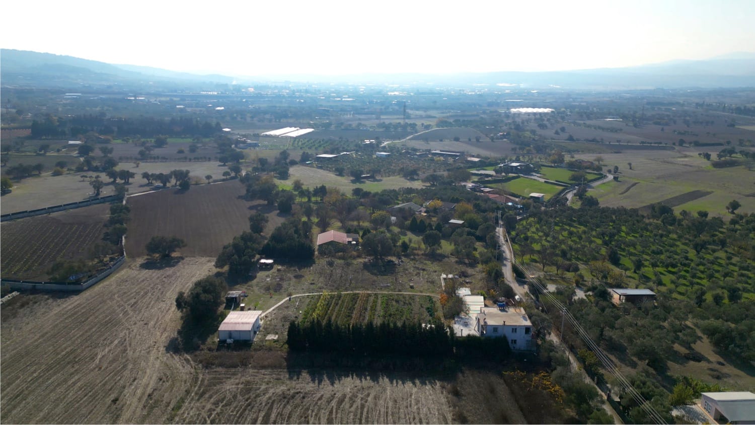 Arazimiz, 60 metre yol cephesiyle kadastro yolundan yüksekte konumlanmış olup, çevreden izole durumdadır. Meyve ağaçlarıyla dolu bahçesi, ayrı elektrik ve su abonelikleri, tarımsal sulama ve elektrik bağlantılarıyla tam donanımlıdır. Çevresinde yeni yapılaşan çiftlik ve bağ evleri bulunmaktadır.